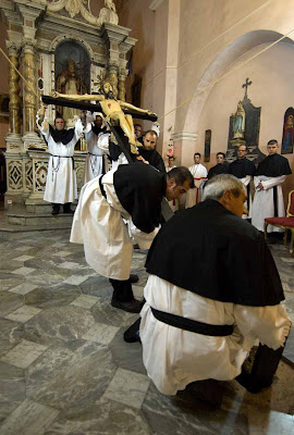 Fino agli inizi degli anni sessanta, prima cioè che la Confraternita del Rosario chiedesse il permesso al Vescovo di poter svolgere i riti della Settimana Santa in due giorni separati, tutte le funzioni si svolgevano nel solo giorno del Venerdì Santo, secondo le Sacre Scritture.